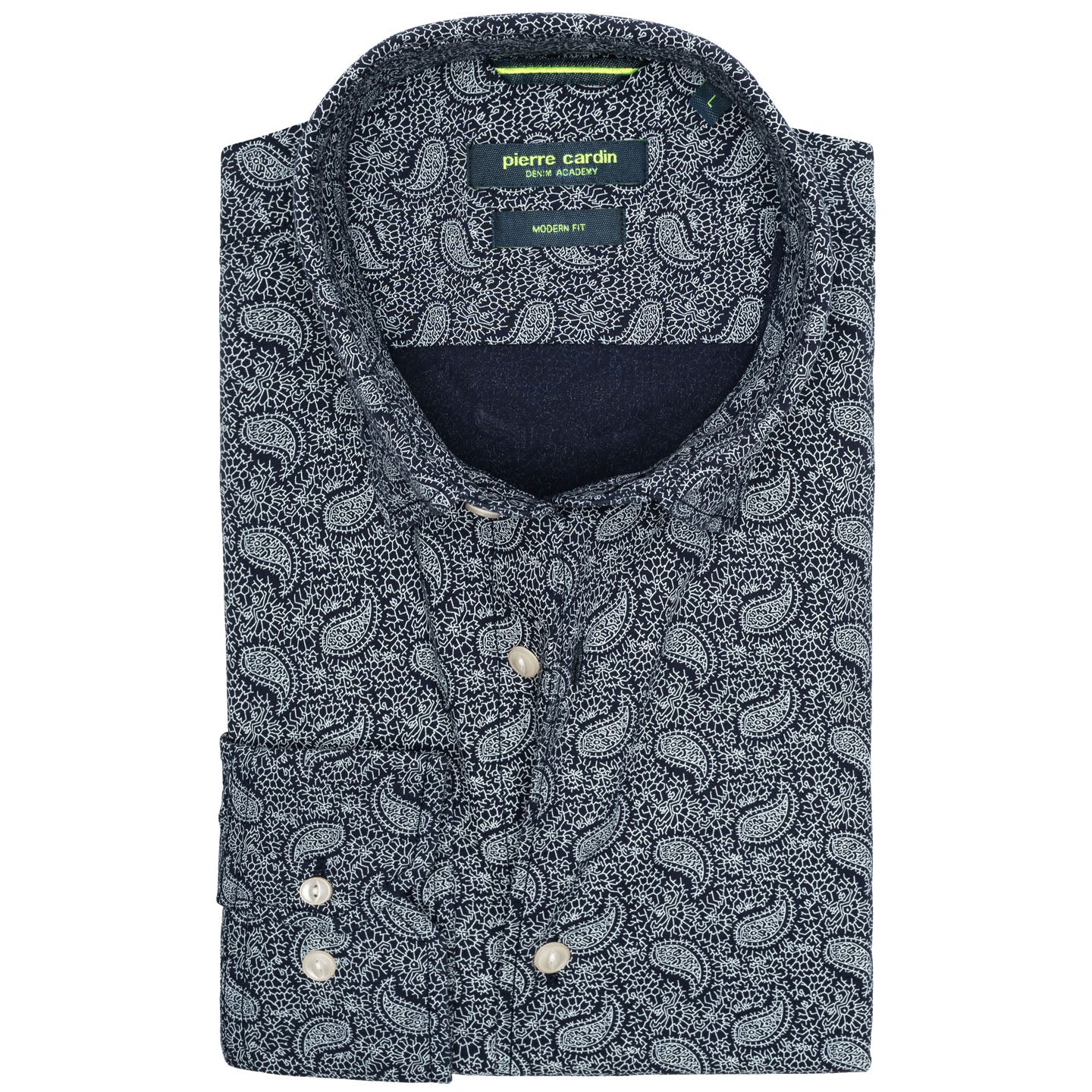 PIERRE CARDIN Denim Academy Modern Fit Greco Fehér Paisley Virágmintás Fekete Karcsúsított Tiszta Pamut Ing