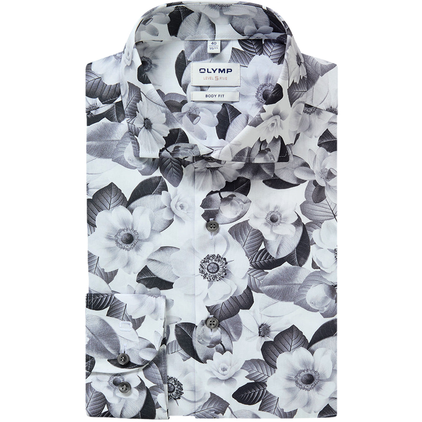 • olymp-level-5-body-fit-vilagos-floral-viragmintas-szurke-mandzsettas-tiszta-pamut-finom-tapintasu-vasalasmentes-ferfi-fekete-feher-ing-extra-karcsusitott-oltozkodes-20561463-menswear-shirt-ironfree-silky-ruházat-vőlegény-passion-style