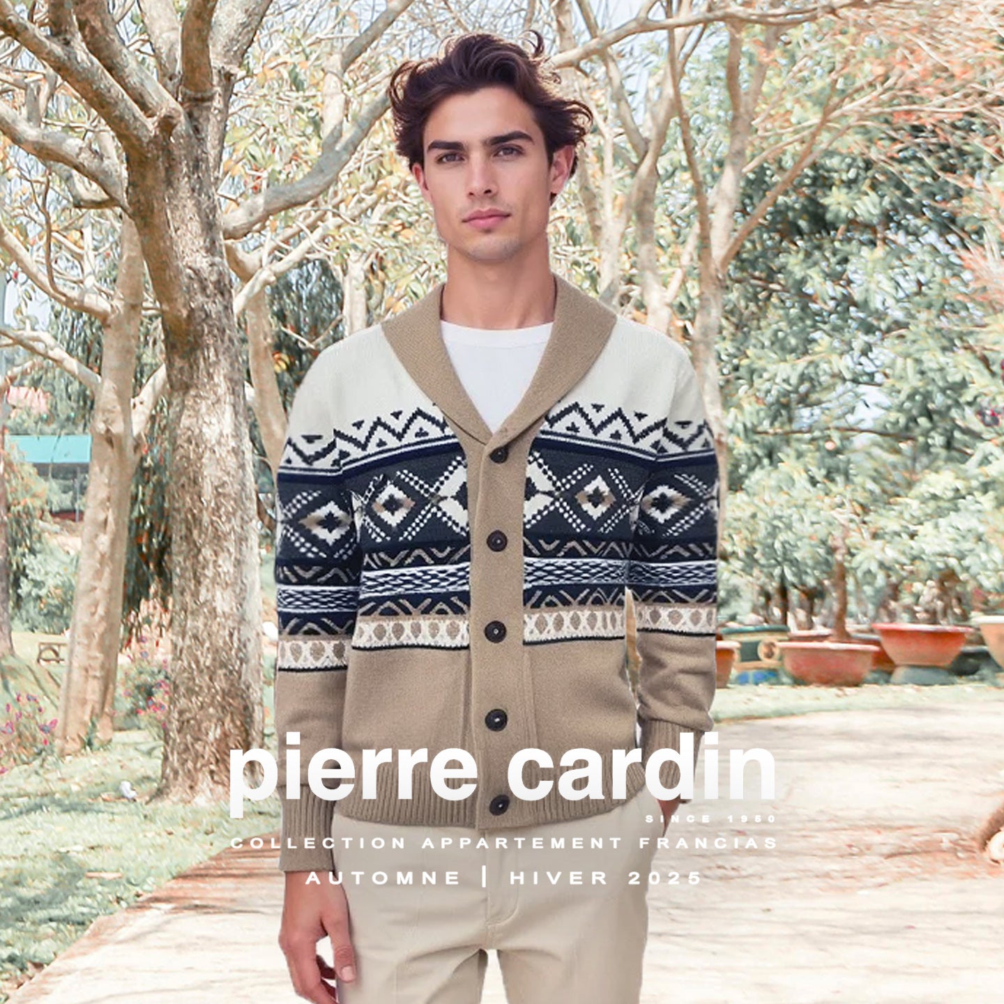 Lehengerlően stílusos, kötött, norvég mintás Pierre Cardin kardigán a Casual kollekcióból. Rendkívűl sportos, lebilincselő dekorációjú felső, érzékletesen összeállított, sötétkék, drapp és fehér színű, klasszikus, gombos...