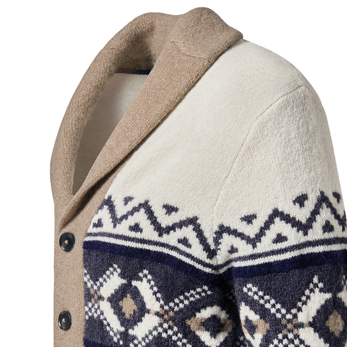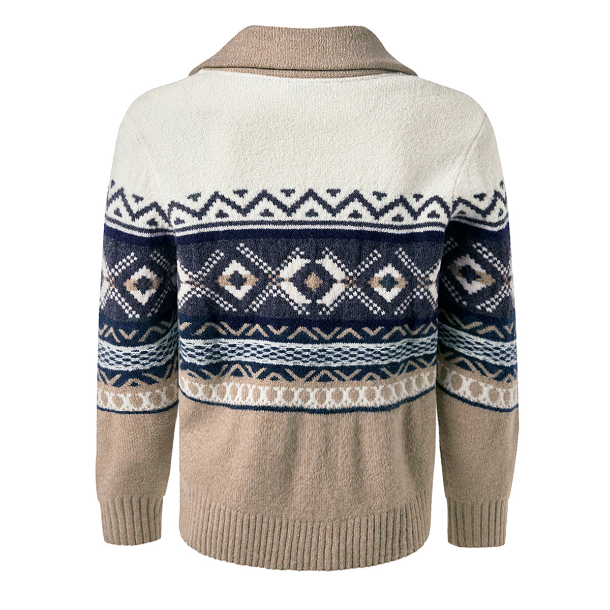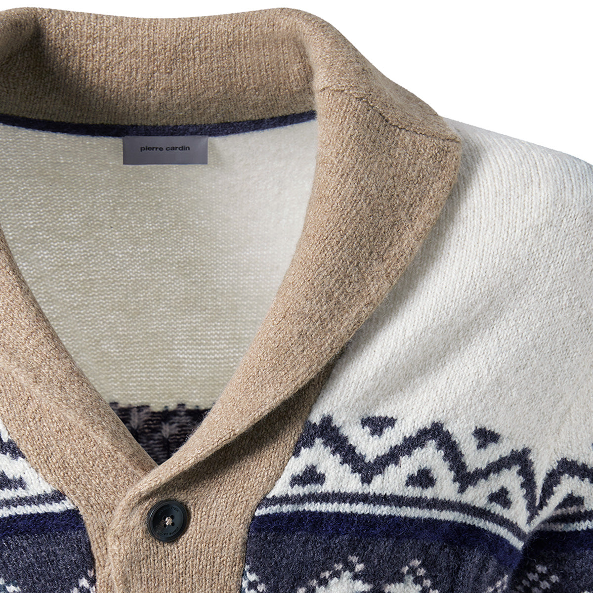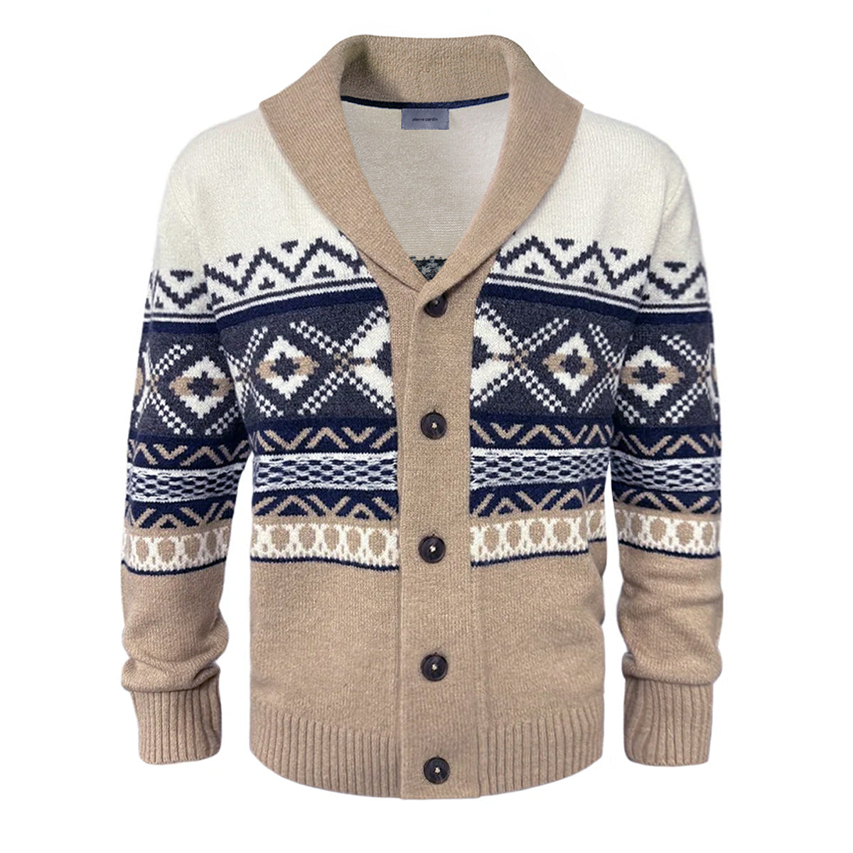PIERRE CARDIN Casual Modern Fit DeAngelis Marine Sötétkék Drapp Fehér Norvég Mintás Kötött Gyapjú Kardigán