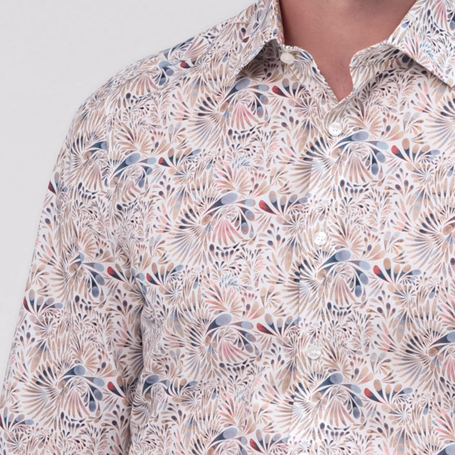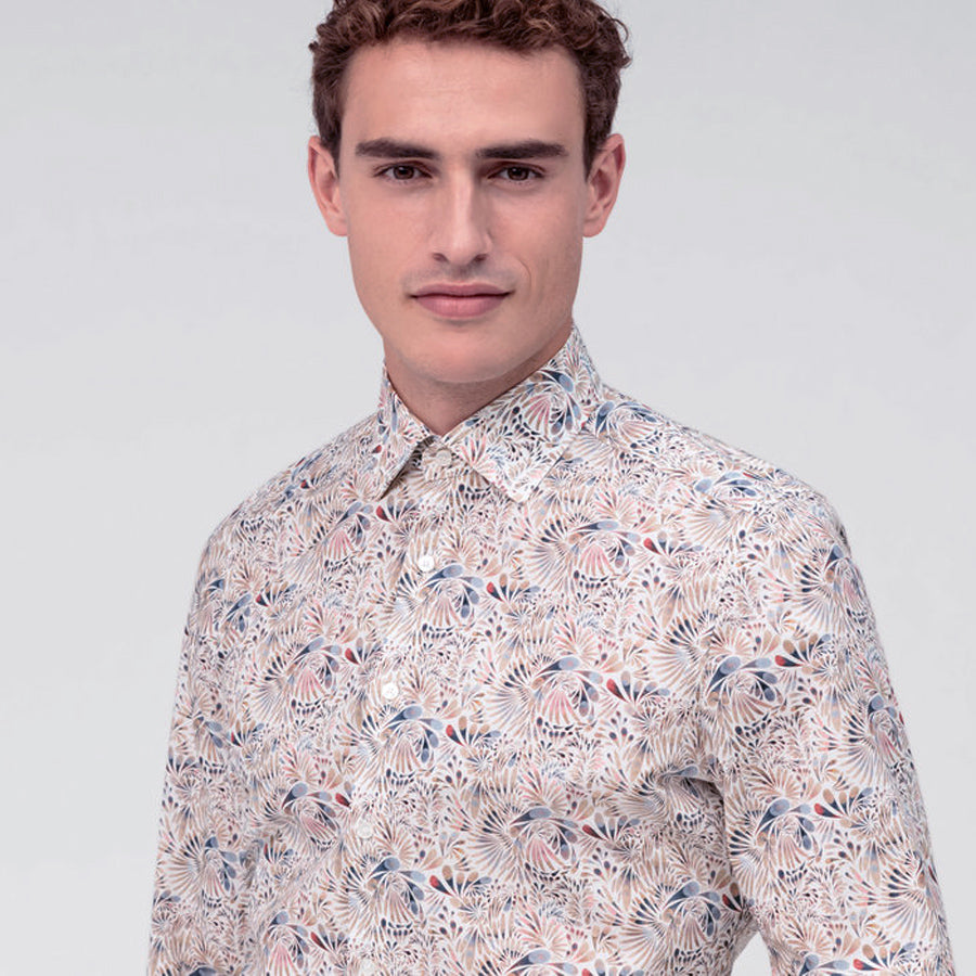 OLYMP Business Luxor Modern Fit Henderson Piros Kék Virágmintás Karcsúsított Selymes Tapintású Tiszta Pamut Vasalásmentes Ing