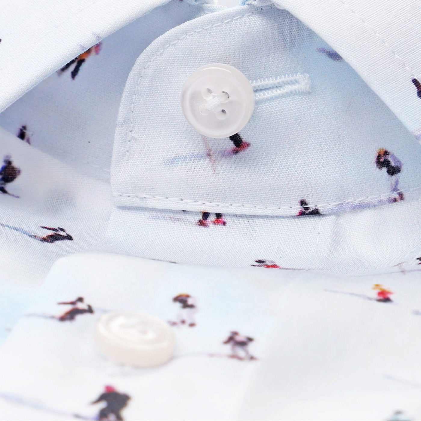 Az Olymp Luxor kollekciójának e letisztult darabja hűen tükrözi a tél felszabadultságát, játékos lendületet adva ezzel a síelőkkel teli mintázatú inggel. A hófehér ingen helyenként...
