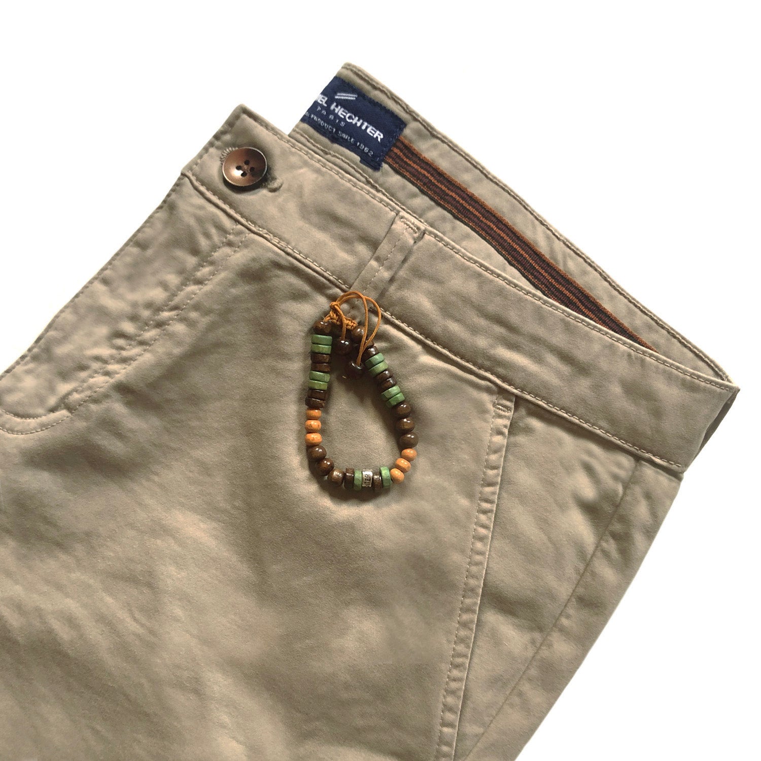 Világosbarna, rendkívül finom tapintású, csiszolt, egyiptomi pamutból készült, cipzáros Daniel Hechter chino nadrág. A lezser, smart business trendhez illeszkedő, sportosan elegáns svéd oldal-, illetve hátulsó gombos...