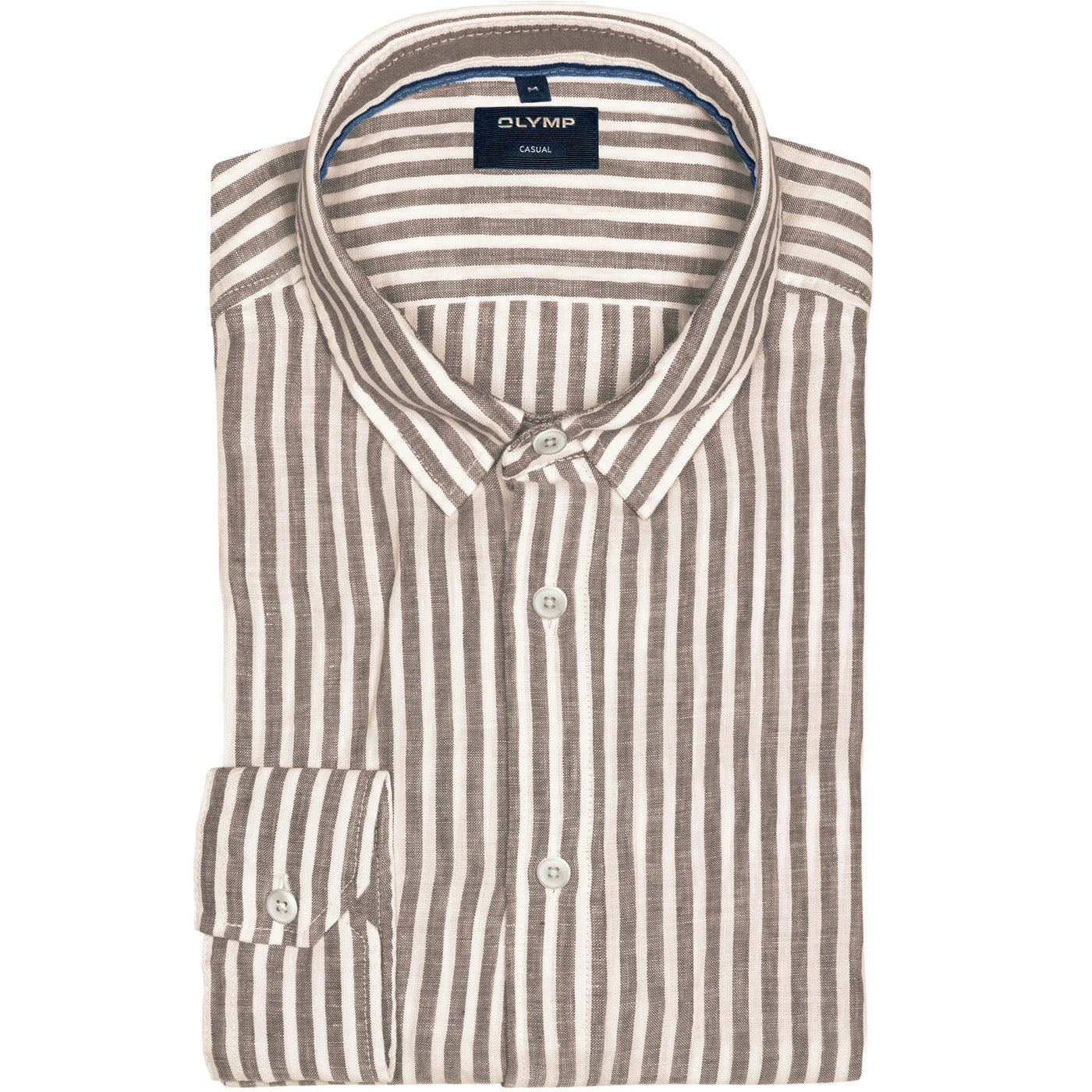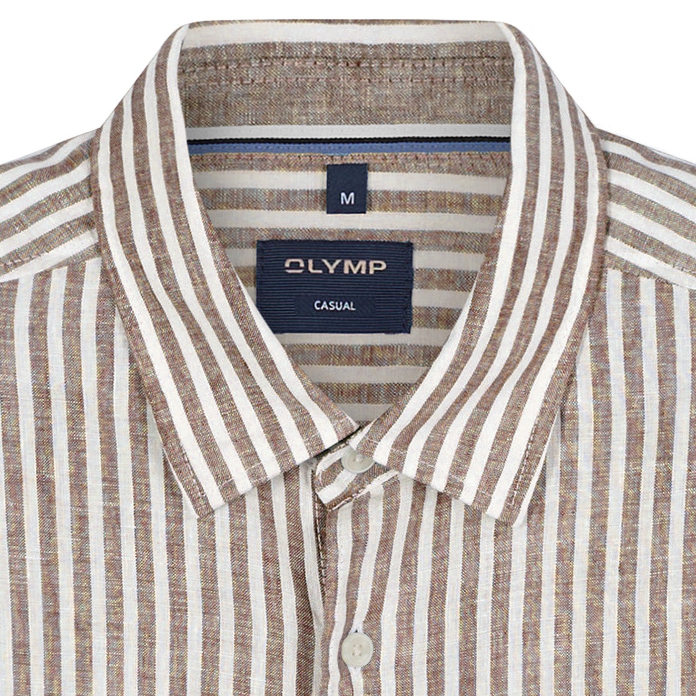 • OLYMP Casual Regular Fit Alejandro Világosbarna Fehér Római Csíkos Lezser Szabású Finom Tapintású Tiszta Len Ing