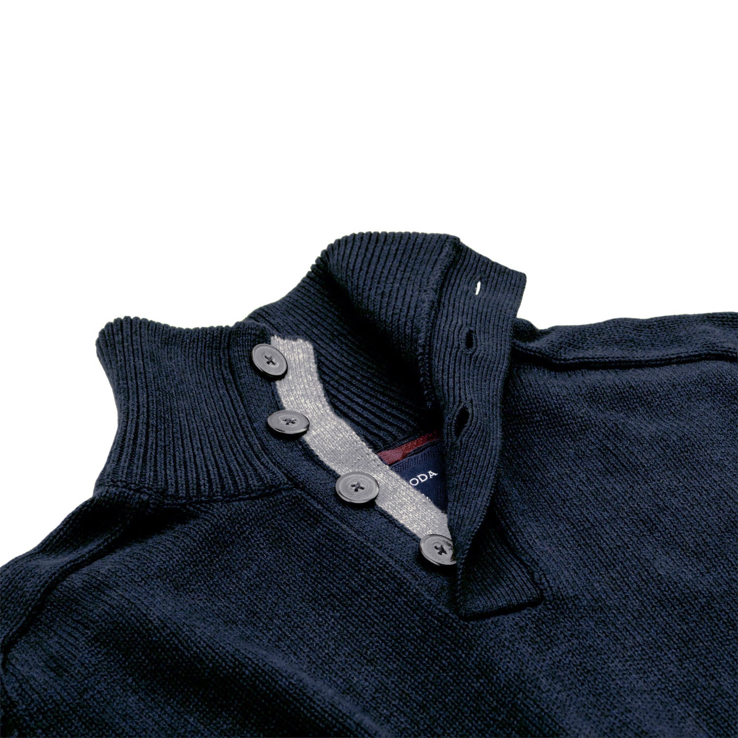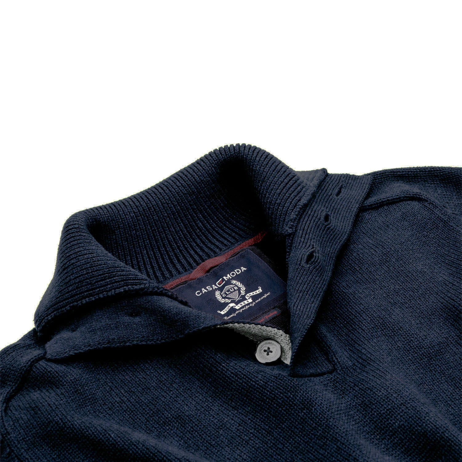 CASA MODA Arctic Sport Modern Fit Sötétkék Kötött Galléros Gombos Karcsúsított Tiszta Pamut Pulóver