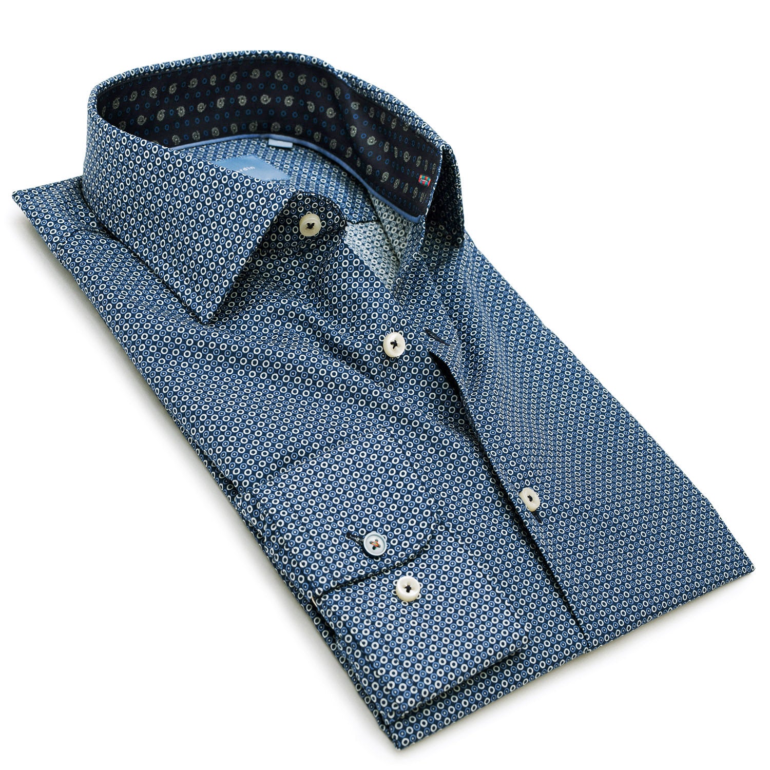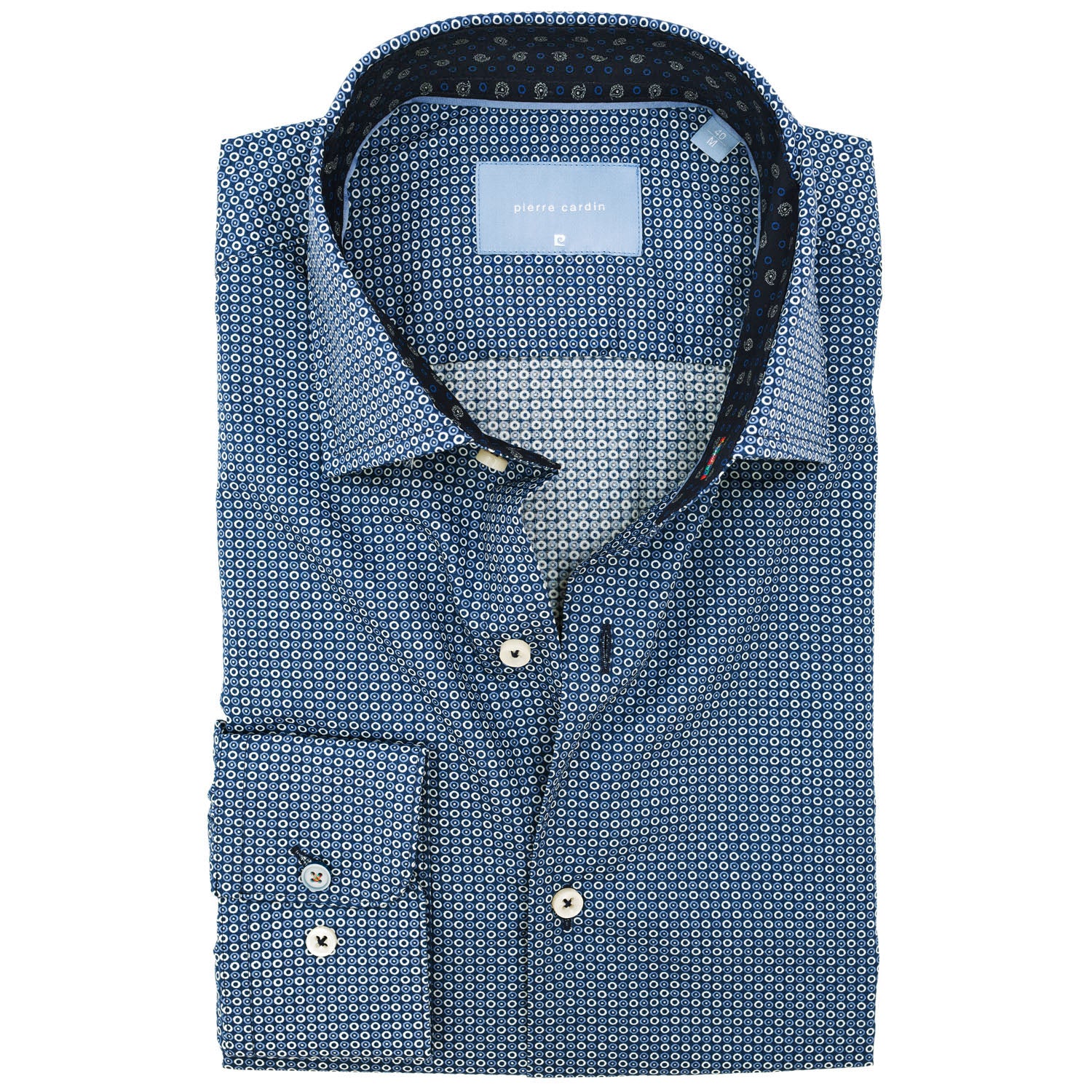 PIERRE CARDIN Le Bleu Business Smart Slim Fit Körmintás Tengerkék Színű Karcsúsított Tiszta Pamut Ing