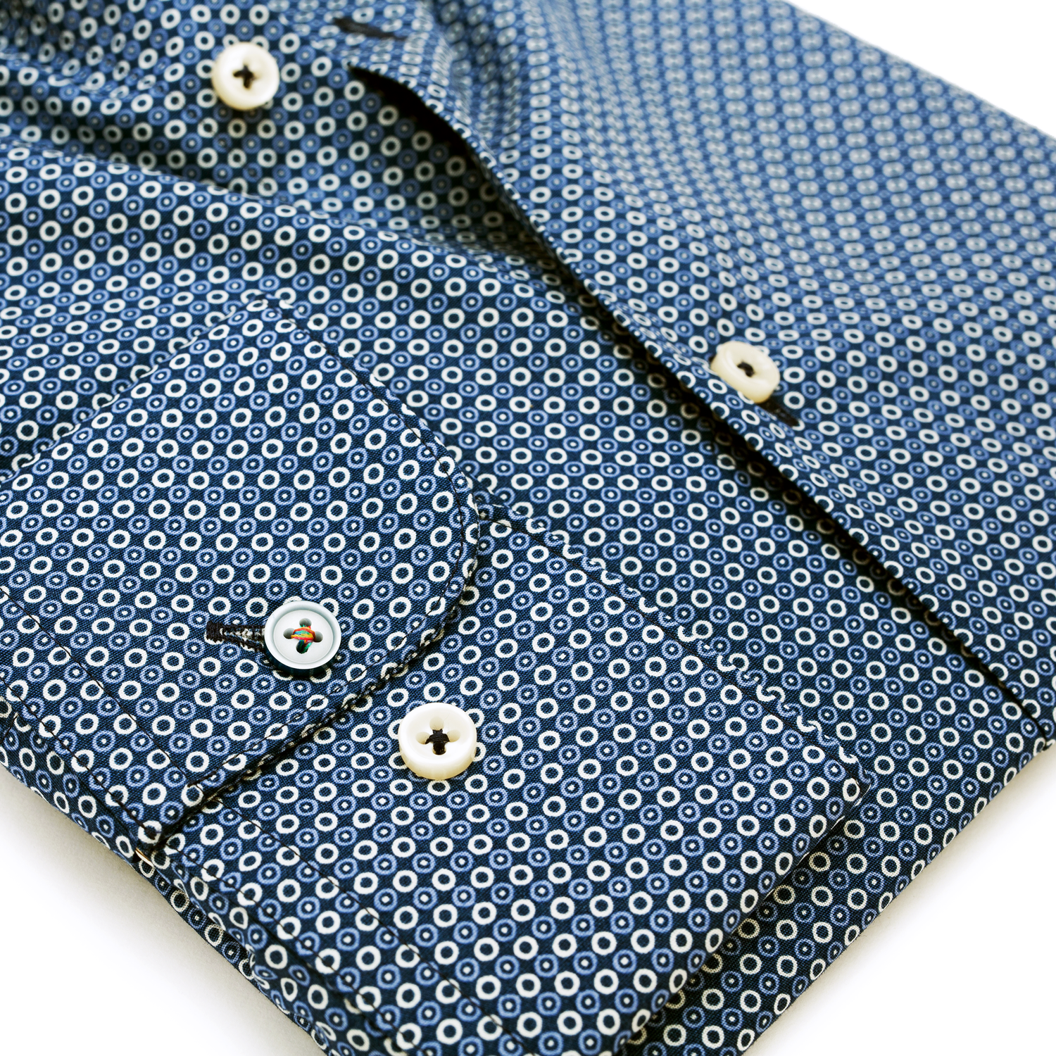 Roppant férfias összhatású, extra karcsúsított, hosszú ujjú, sötétkék Pierre Cardin ing a megkülönböztetet Le Bleu kollekcióból. Kétszínű, körmintás, pöttyös mintázata felettébb impozáns, karakteres benyomást kelt, amit...
