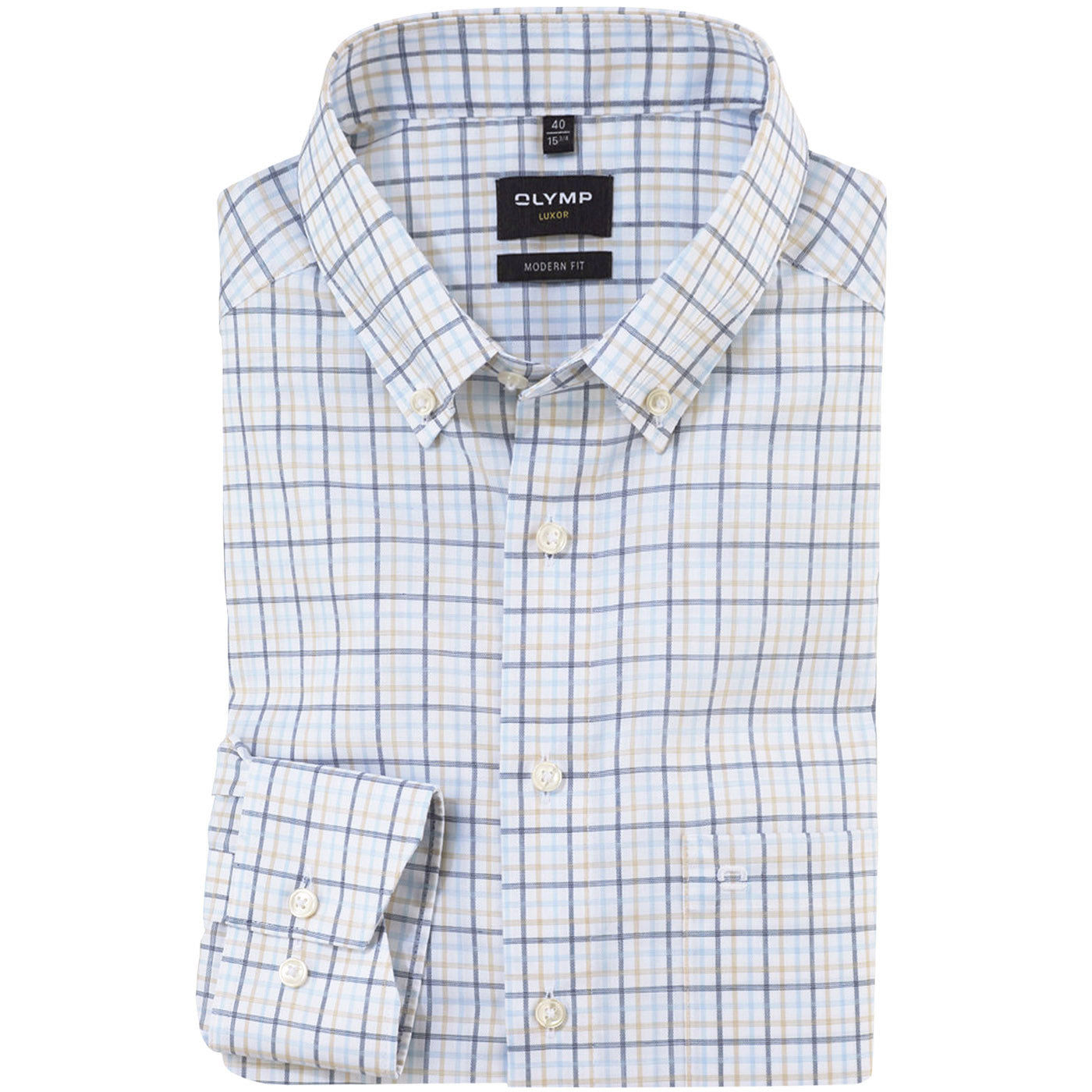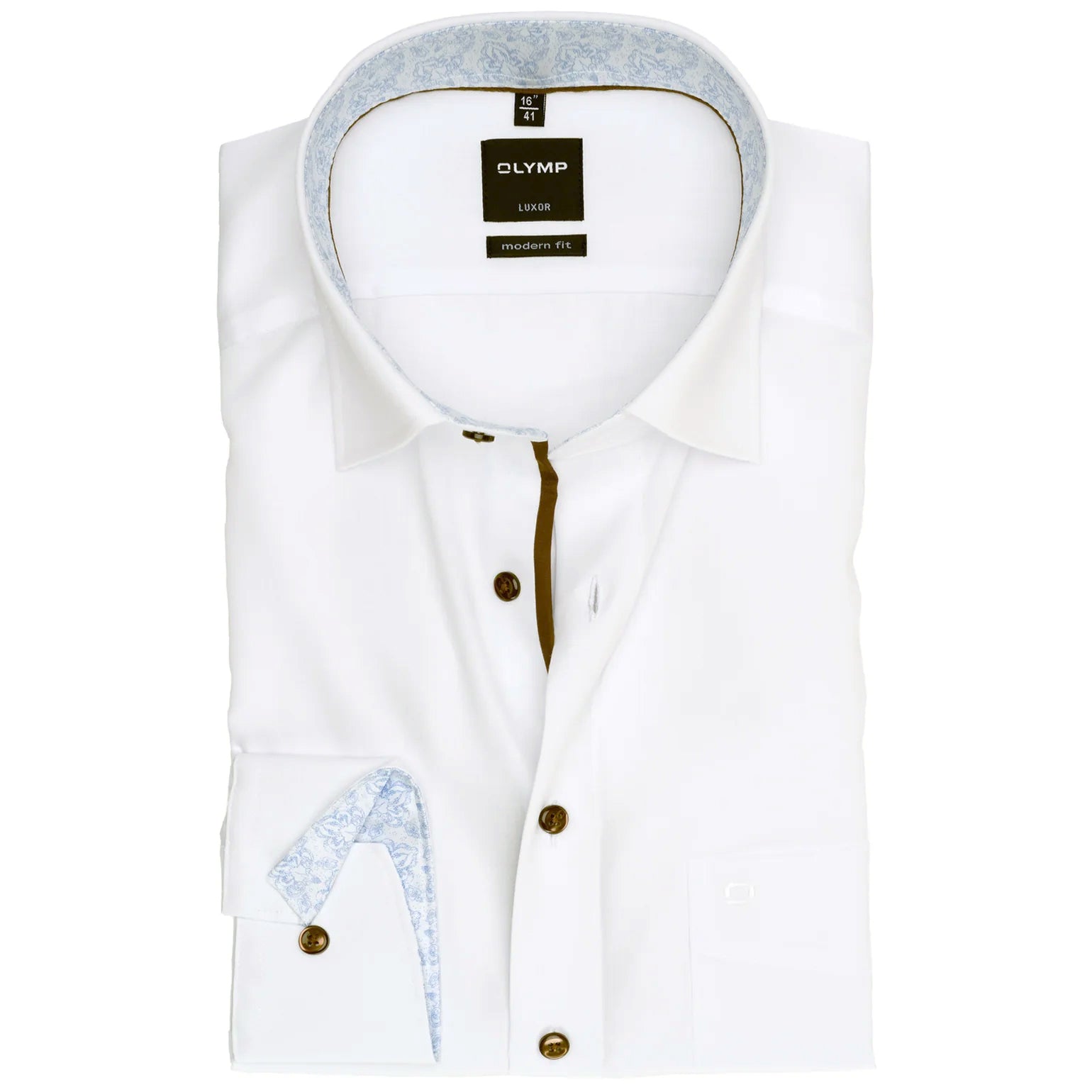OLYMP Luxor Modern Fit Floral Hófehér Világoskék Virág Mintás Karcsúsított Vasalásmentes Tiszta Pamut Ing