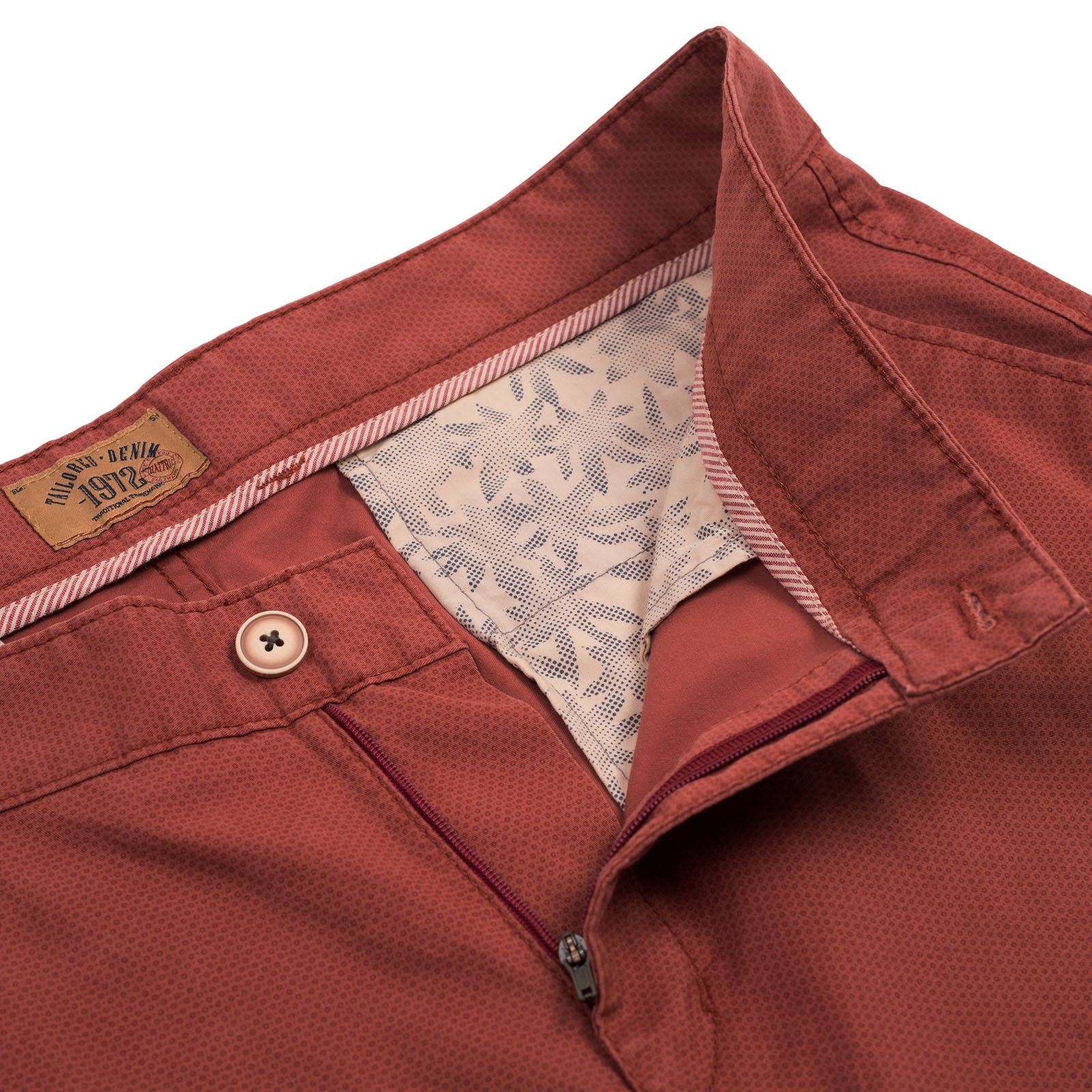 HATTRIC Casual Modern Fit Cipzáros Svédzsebes Téglavörös Apró Pöttyös Mintázatú Rövidnadrág