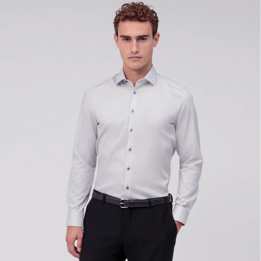 OLYMP Business Level 5 Body Fit Cisternino Különleges Diagonál Szövésű Finom Tapintású Ezüst Szürke Extra Karcsúsított Ing