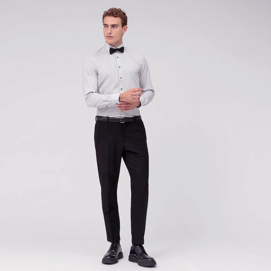 Különleges, apró diagonál szövésű, ezüst szürke, extra karcsúsított Olymp ing a Level 5 kollekcióból. Világos színáranyalata ünnepélyességet sugároz, mely módfelett alkalmas kitüntetett események kiegészítőjeként, szmokingos,...