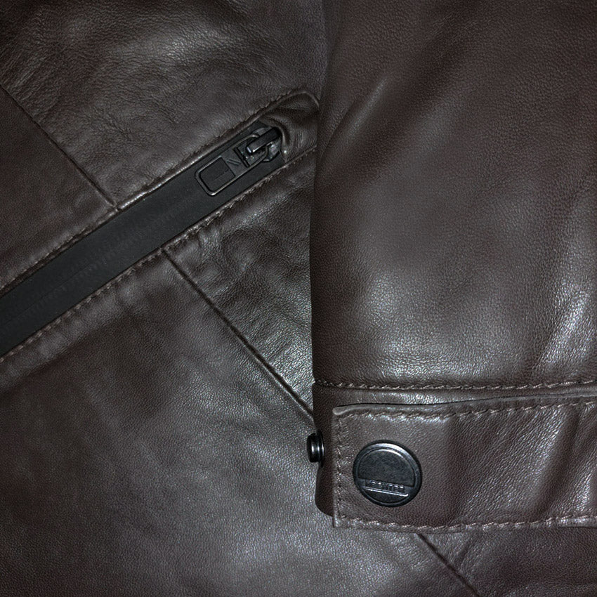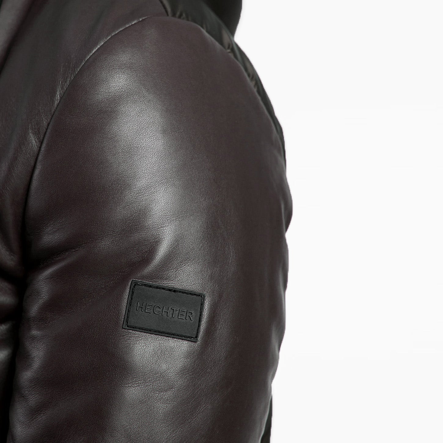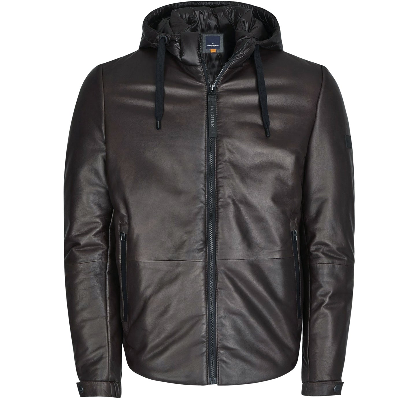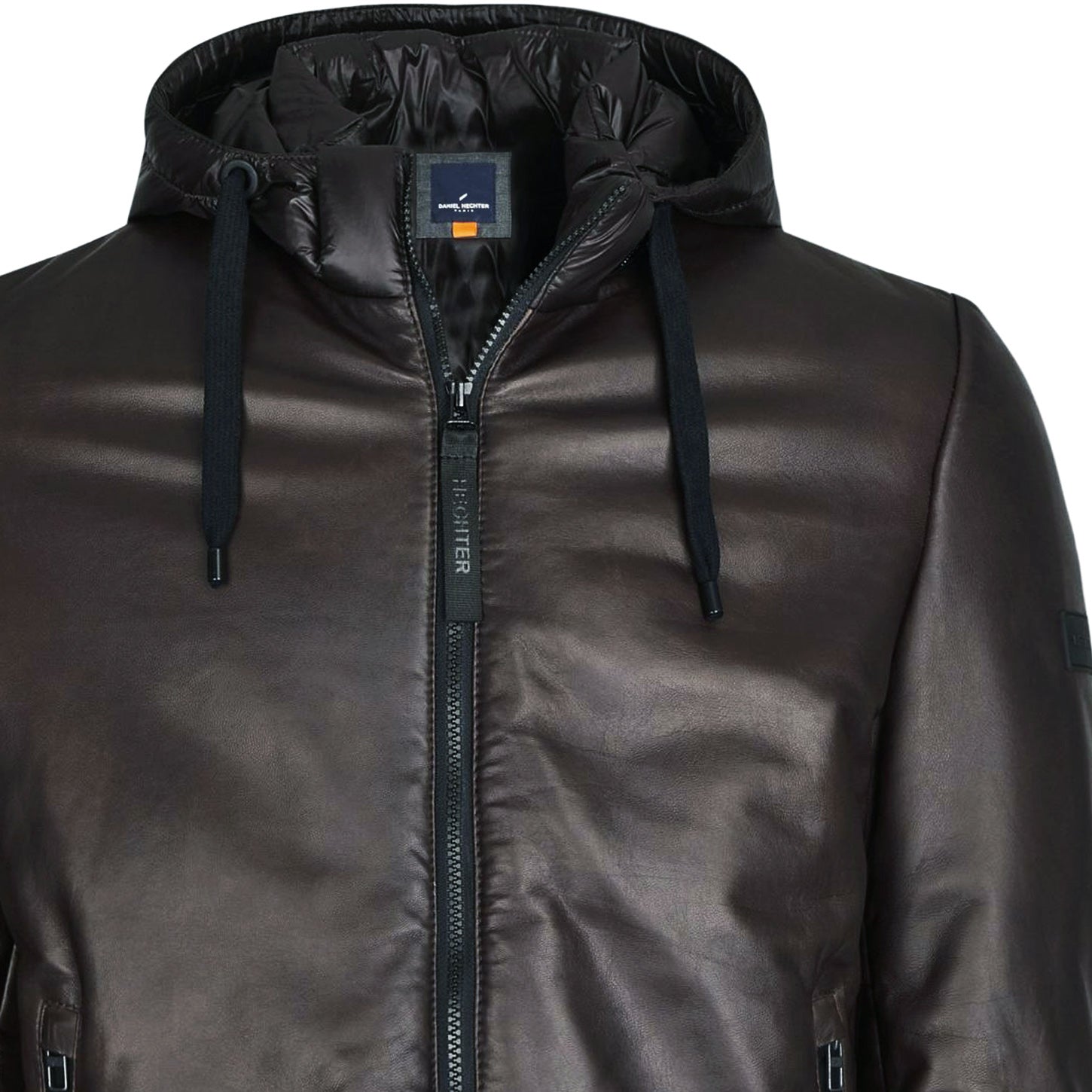 DANIEL HECHTER Modern Fit Giacometti Tiszta Báránybőrből Készült Steppelt Hátoldalú Levehető Kapucnis Csokoládébarna Bőrdzseki