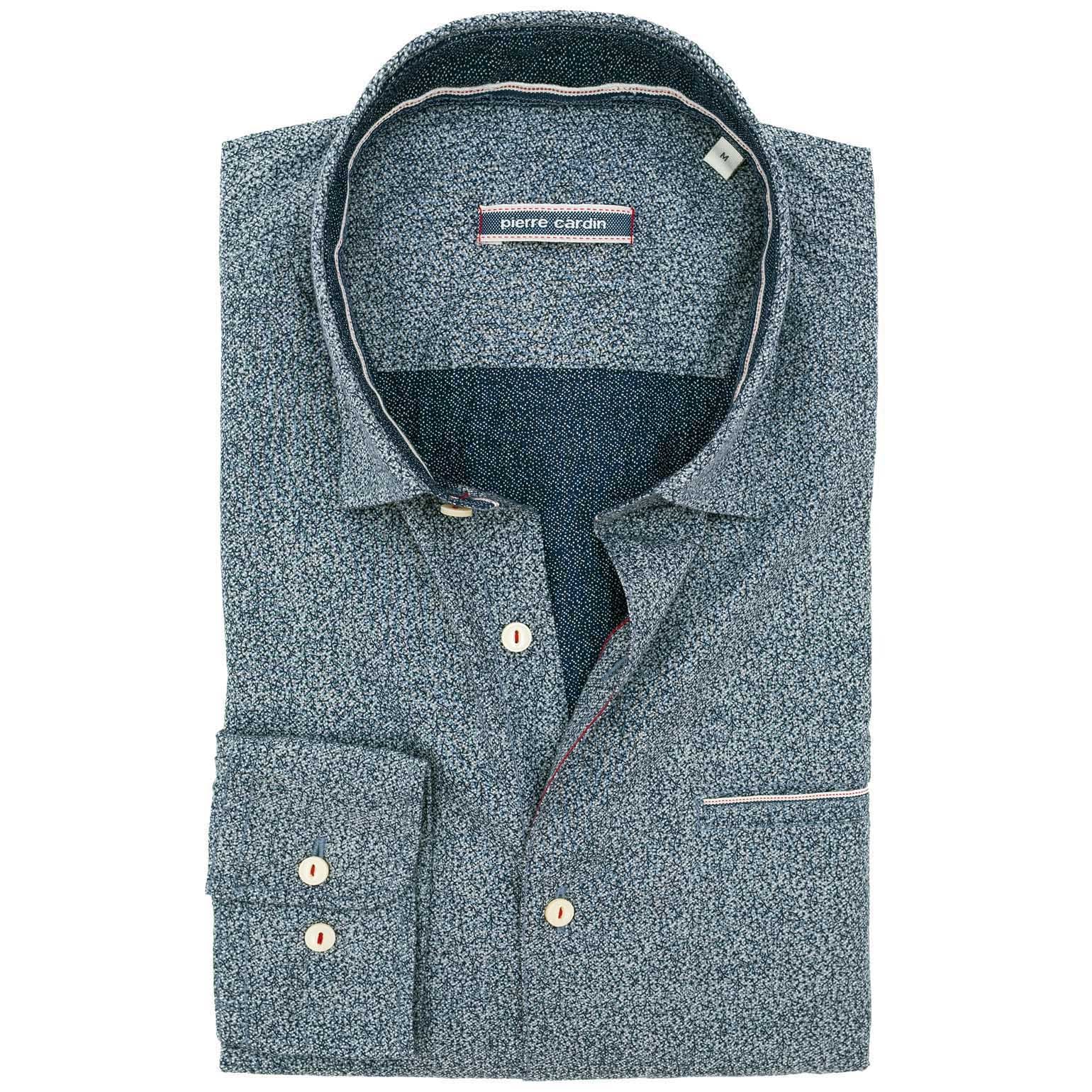 PIERRE CARDIN Denim Academy Slim Fit Marlon Kékes Szürkés Virágmintás Extra Karcsúsított Tiszta Pamut Ing