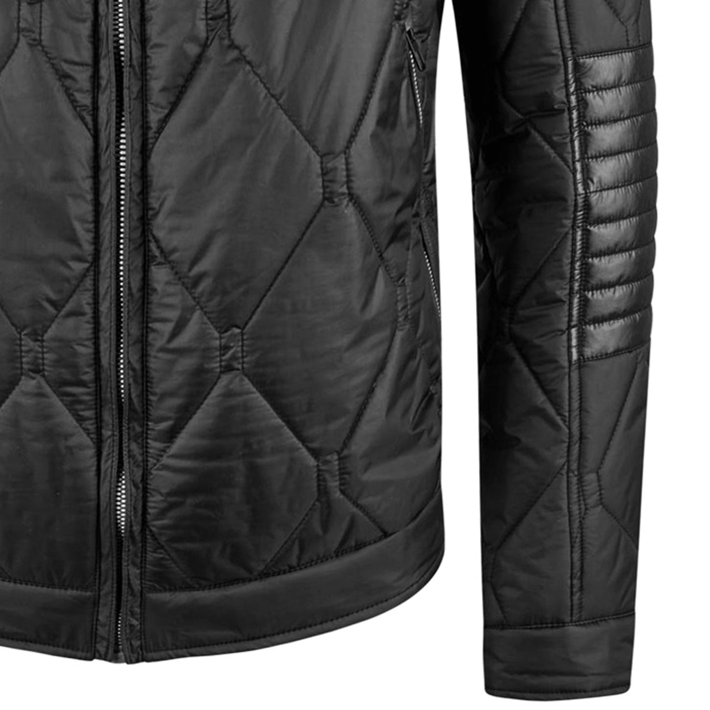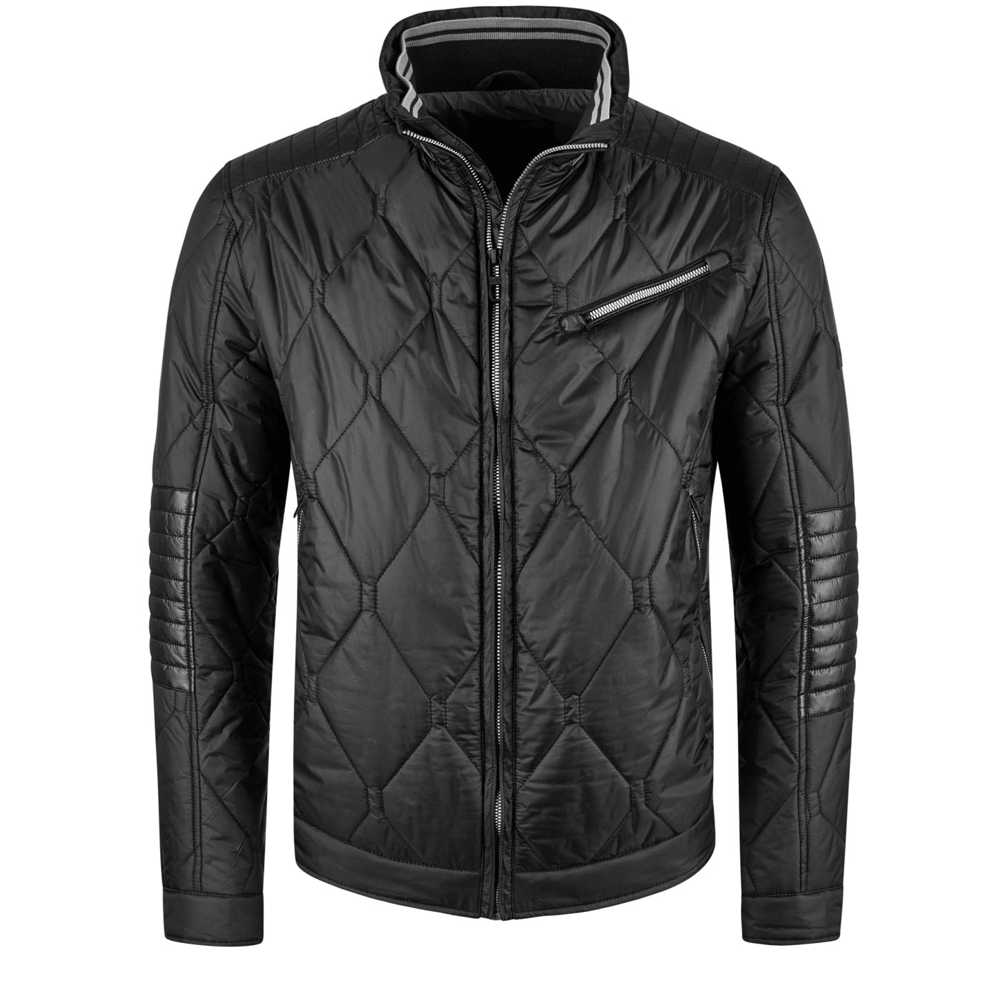 DANIEL HECHTER Modern Fit Martinez Biker Fekete Különleges Geometrikus Steppelt Cipzáros Karcsúsított Motoros Dzseki