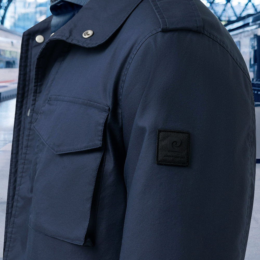 PIERRE CARDIN Casual Modern Fit Galliano Bolyhosodásálló Navy Sötétkék Cipzáros Patentos Karcsúsított Finom Tapintású Vászon Field Kabát