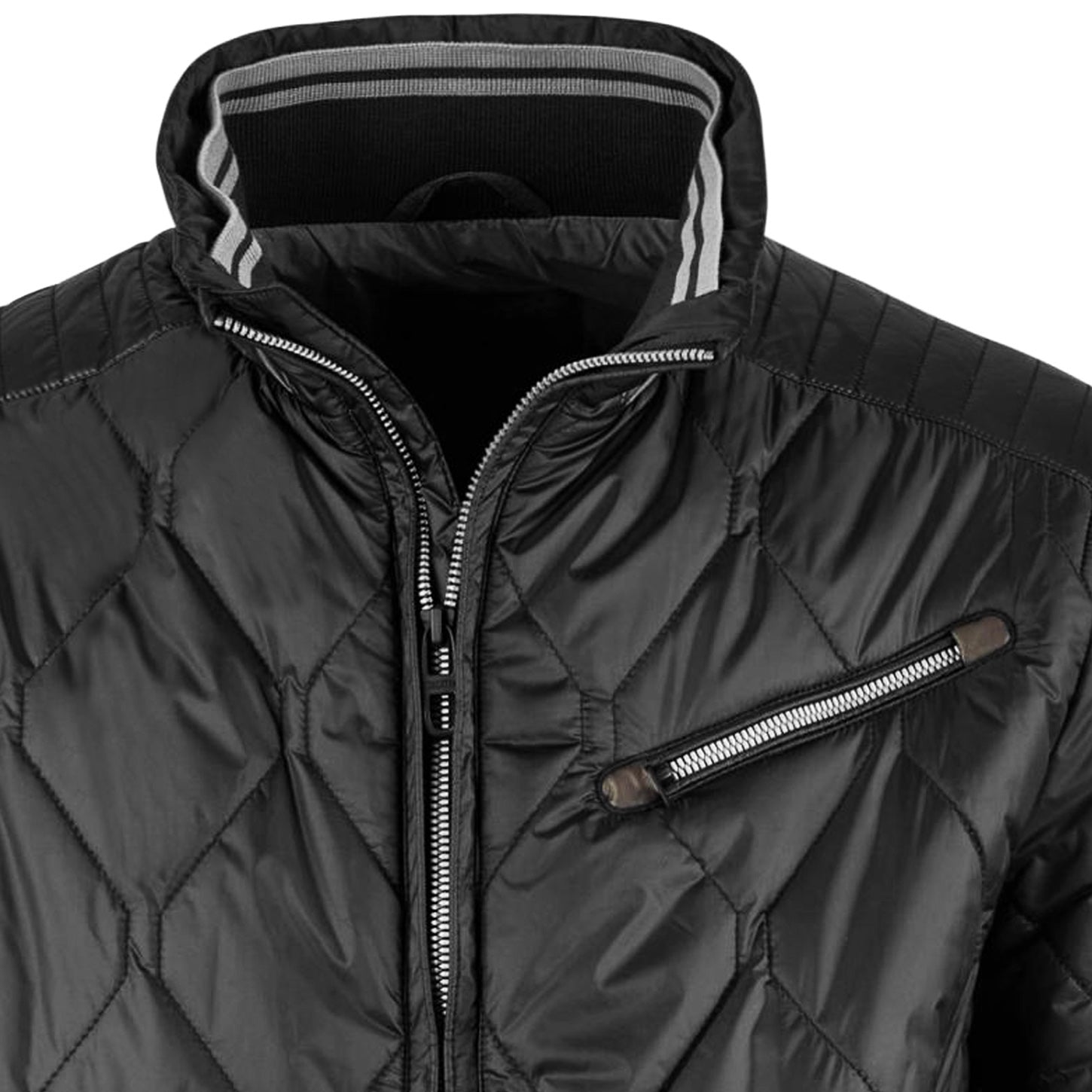 PIERRE CARDIN Casual Modern Fit Avalon Különleges Diagonál Textúrájú Éjfekete Steppelt Karcsúsított Cipzáros Oldalzsebes Dzseki