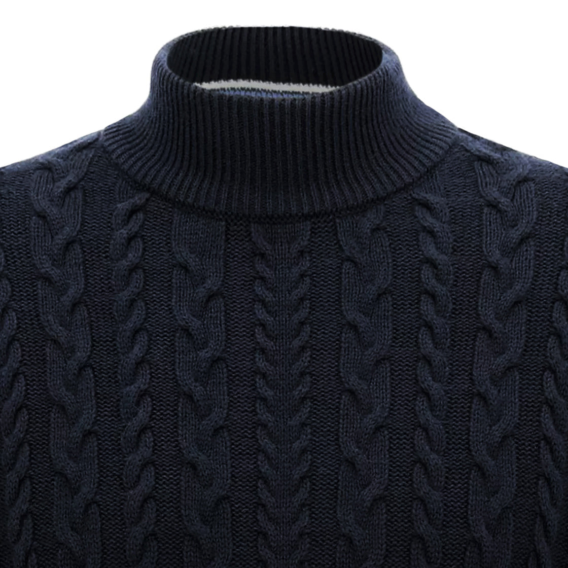 OLYMP Casual Modern Fit Marrow Tengerészkék Kötött Fjord Szövésű Mokknyakú Pamut Gyapjú Pulóver