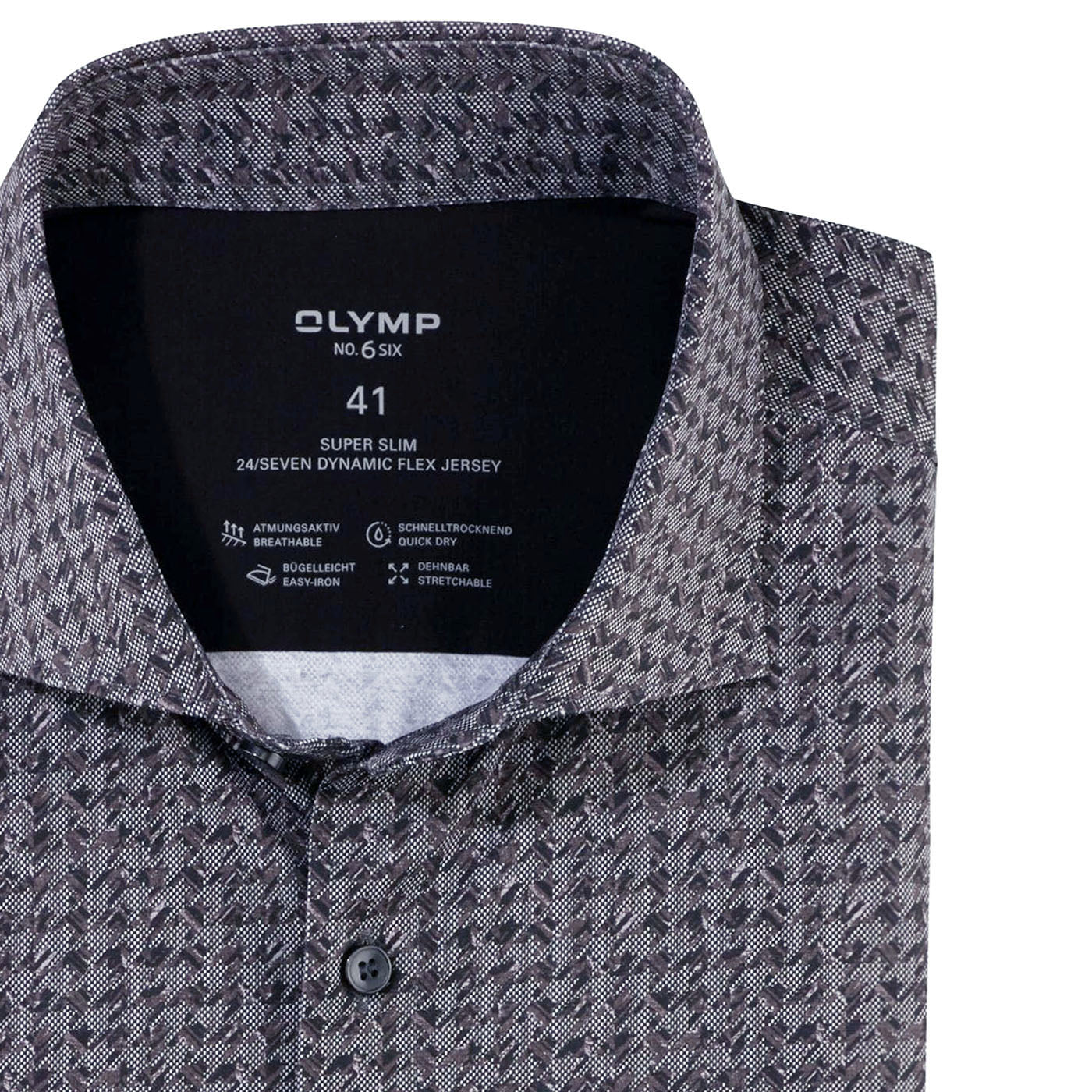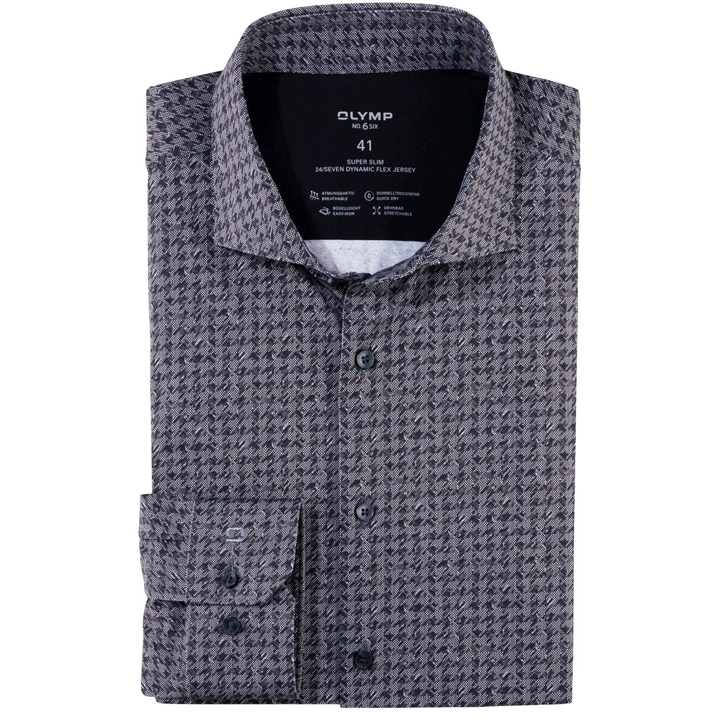 OLYMP Super Slim No 6 24/Seven Macallen Farkasfog Mintás Szuper Extra Karcsúsított Antracit Selymes Jersey Ing