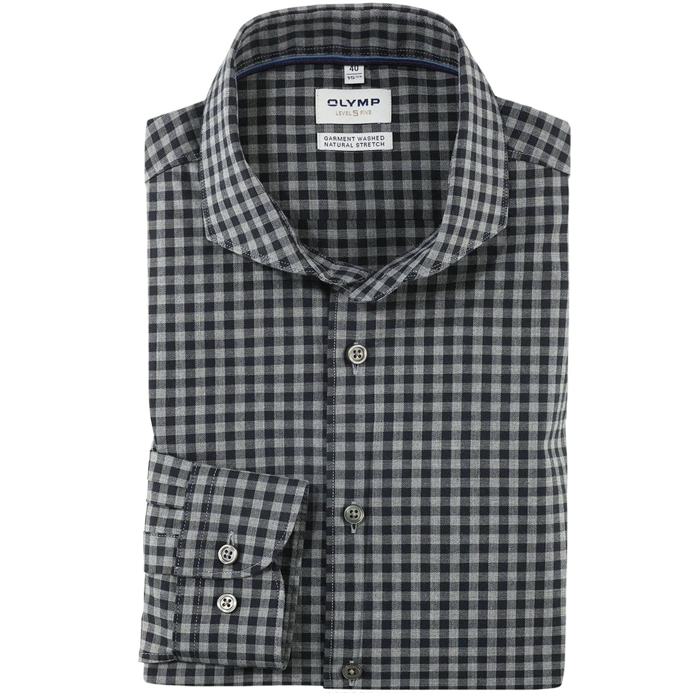 OLYMP Business Level 5 Body Fit MacReady Sötétszürke Fekete Káró Kockás Extra Karcsúsított Puha Tapintású Pamut Ing