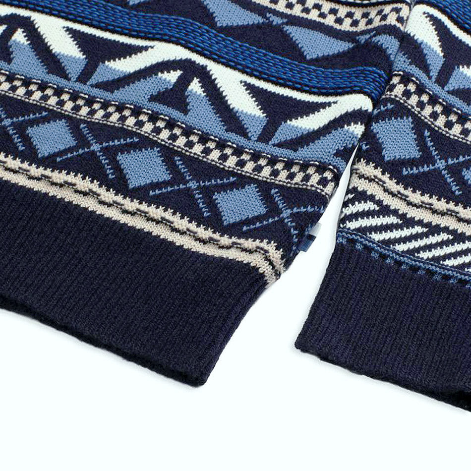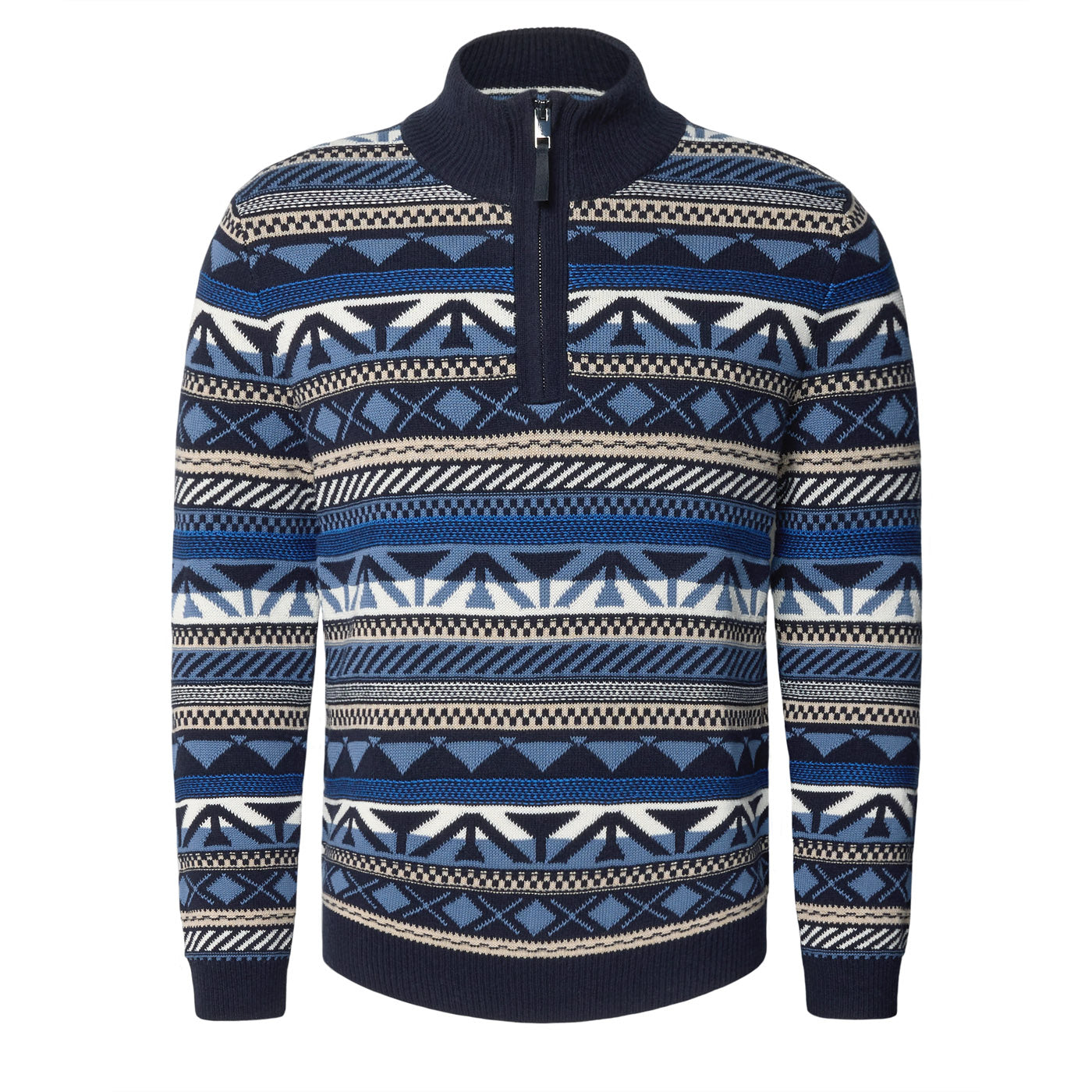 OLYMP Casual Modern Fit Yorke Tengerészkék Fehér Drapp Norvégmintás Kötött Cipzáros Mokknyakú Pamut Gyapjú Pulóver