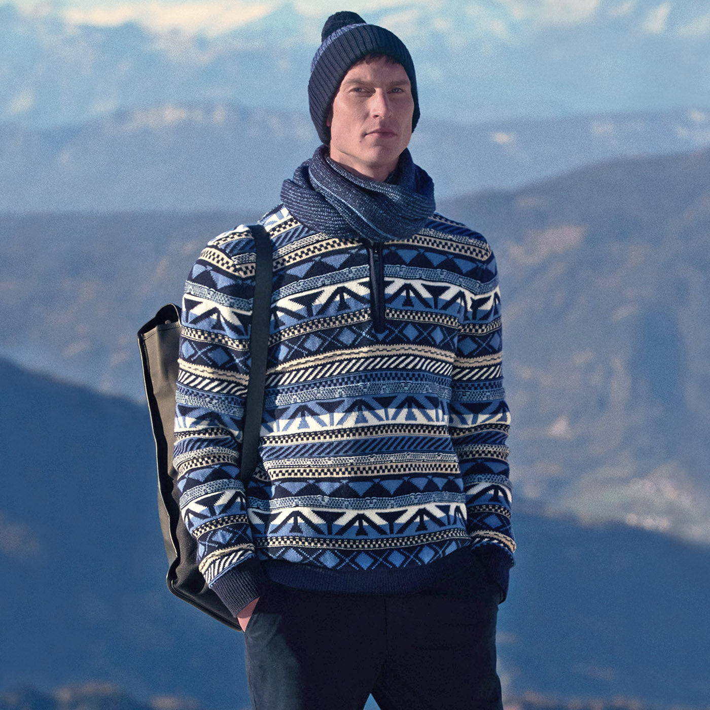Lehengerlően stílusos, kötött, norvég mintás Olymp pulóver a Casual kollekcióból. Az egyszerre cipzáros és mokknyakú megvalósítás rendkívűl sportos, ami ebben a markáns, sötétkék, drapp és fehér...