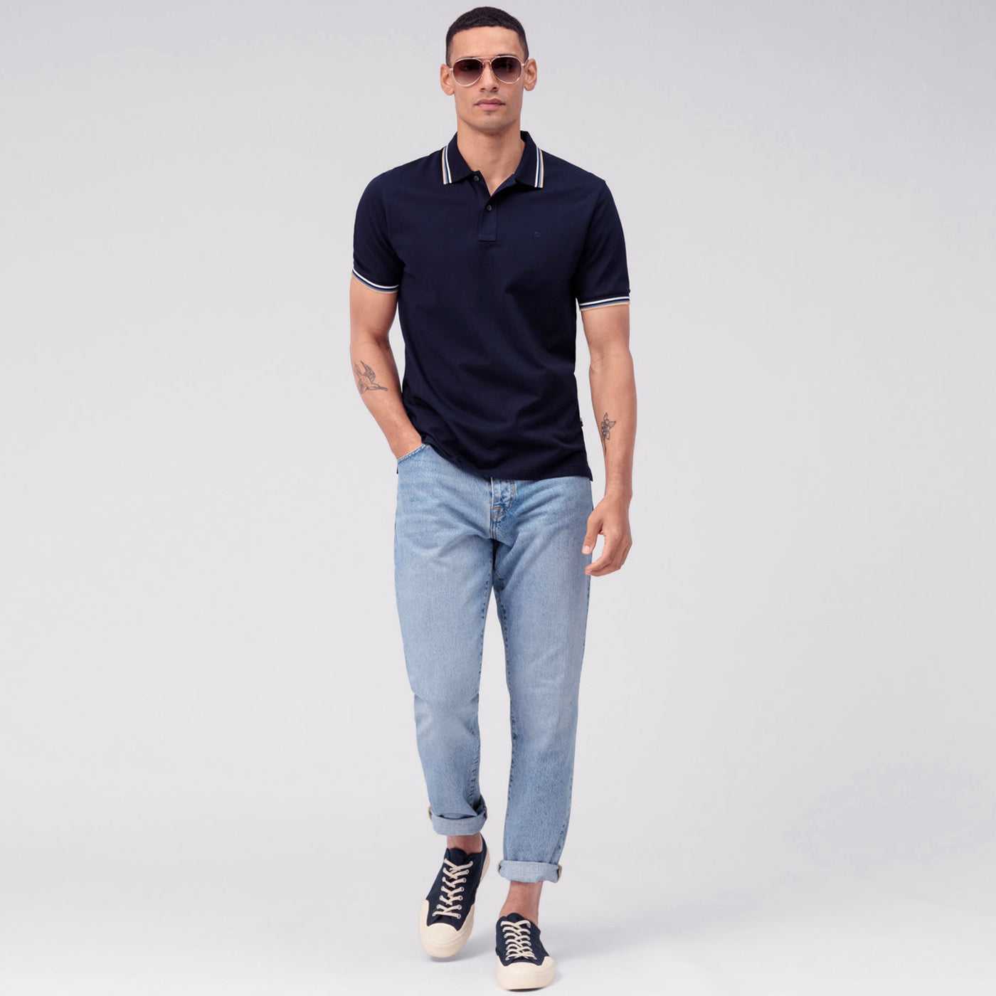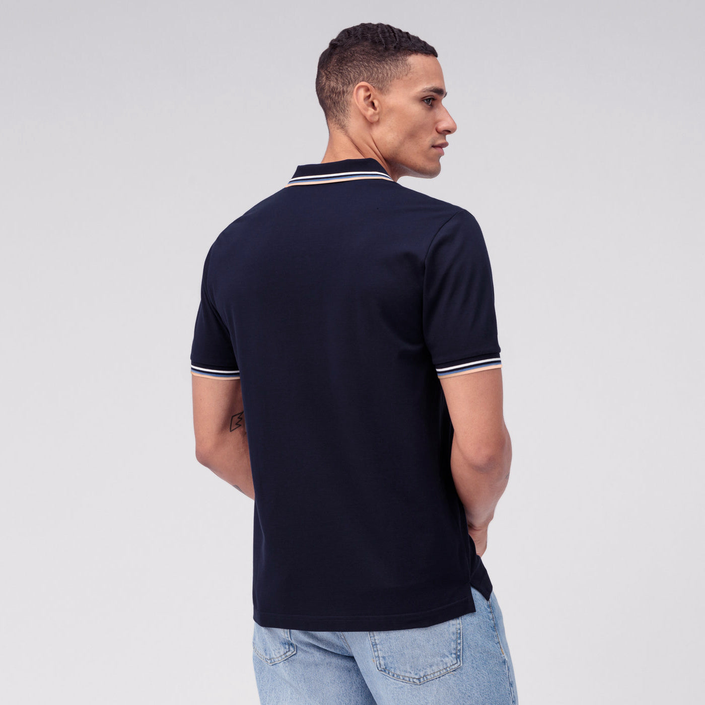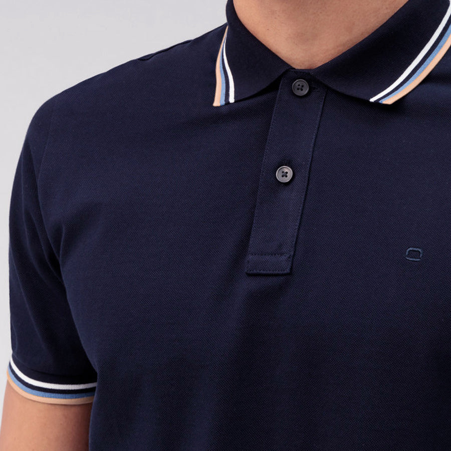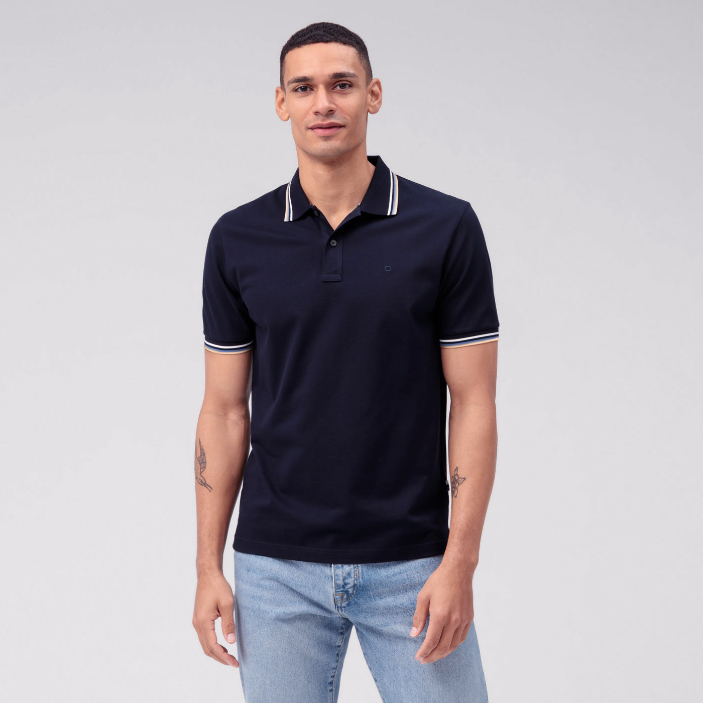 OLYMP Comfort Fit Casual Two-Ply Drapp Világoskék Keresztcsíkos Fekete Galléros Gombos Póló