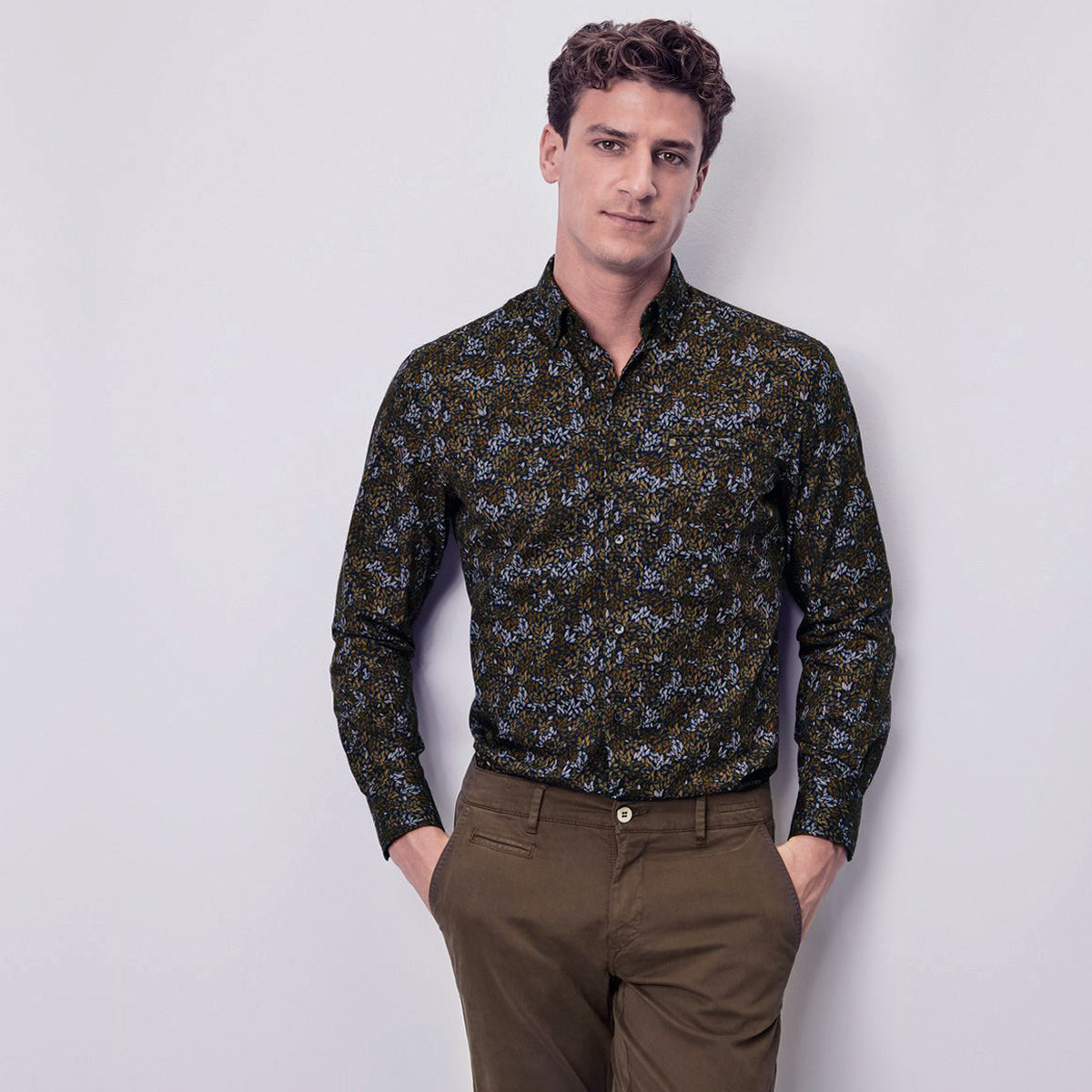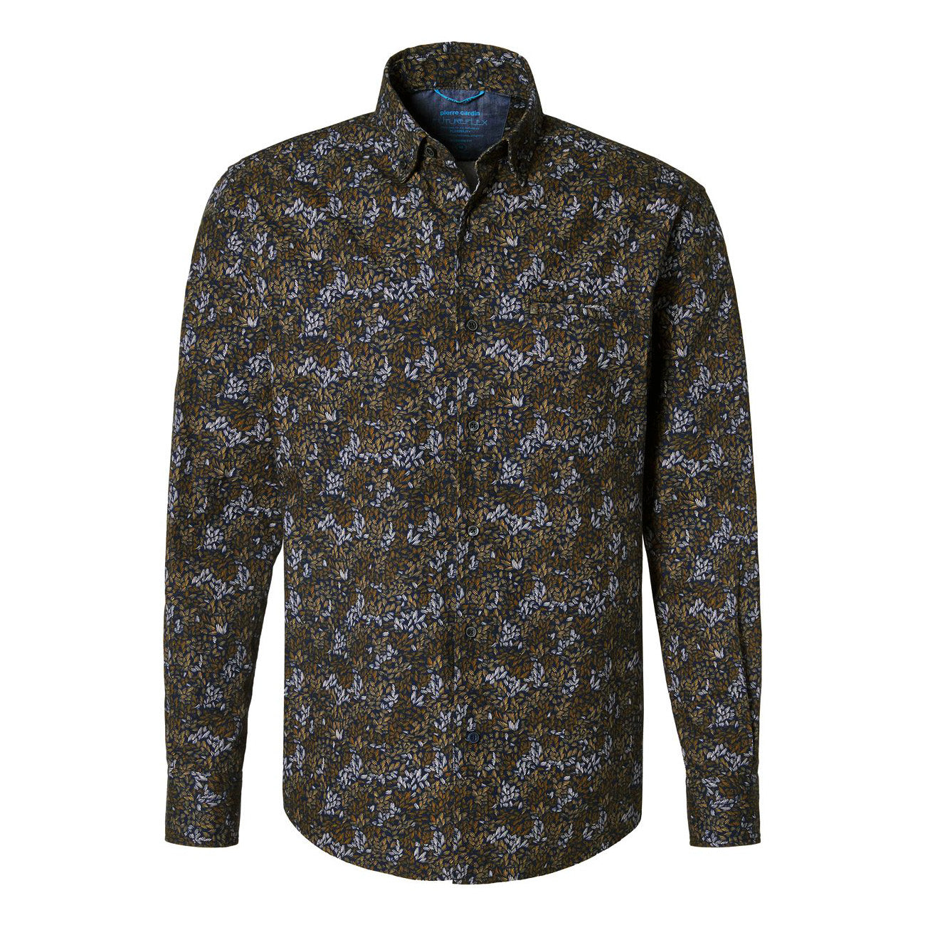 pierre-cardin-modern-fit-futureflex-karcsusitott-levelmintas-sotet-kek-zold-felso-galleros-farmer-ferfi-ing-divatosan-elegans-alkalmi-58832-6930-9082-öltözködés-ruházat-falevél-barna-floral-sportos