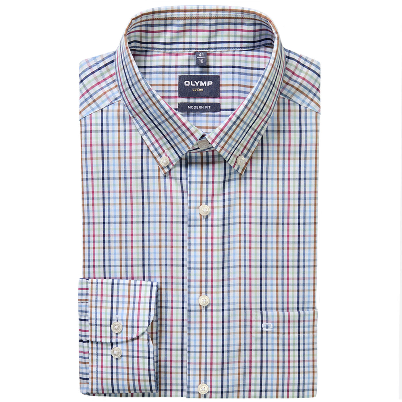 Az Olymp Luxor, közepesen karcsúsított Modern Fit szabású ingjei az erős testalkattal bíró férfiak számára is kényelmes, szabad mozgást biztosítanak anélkül, hogy túlságosan bő szabásúak lennének, tökéletes megjelenést biztosítva. A Modern Fit teljesen egyedi tervezésű kollekciójára szintén jellemző a trendkövető mintázatok és színárnyalatok használata. Emellett, az ing színvonala szembetűnő kezelése során is. A prémium minőségű, 100% egyiptomi pamut anyagösszetétel a különleges eljárásnak köszönhetően vasalásmentes ingeket és garantáltan hosszan tartó viselést eredményez.