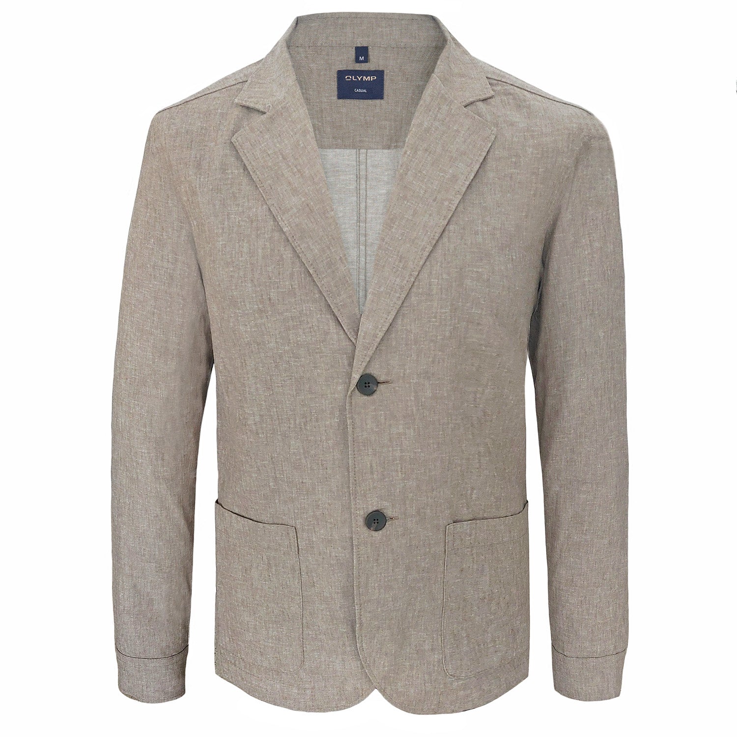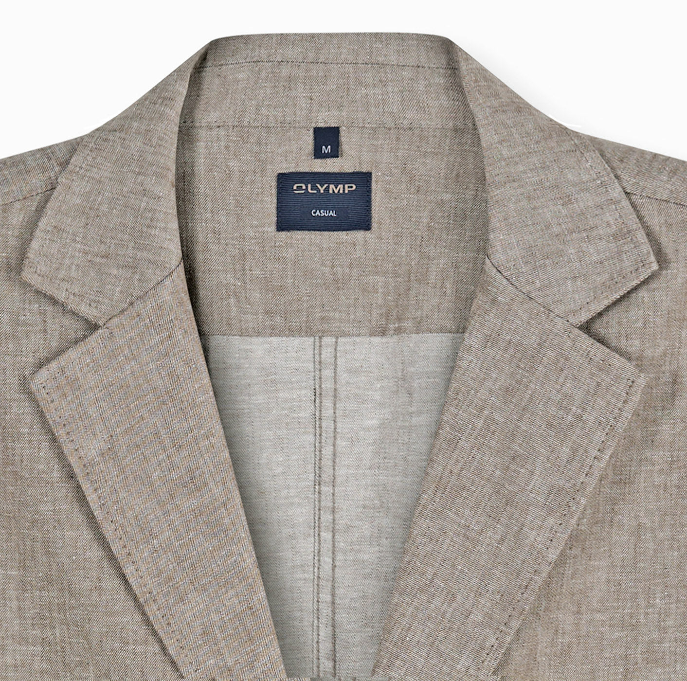 Elbűvölően lezser, világos, kétgombos, mogyoróbarna blazer az Olymp Casual kollekciójából. Ritkaságszámba menő tervezésű darab, mely nagyszerű átmenetet képez az ingek és zakók legelőnyösebb tulajdonságait ötvözve, páratlanul elegáns, lezser megjelenést nyújtva tavasztól őszig. Letisztultan vonzó tervezésű darab, mely tökéletesen érzékelteti a márka elhivatottságát a minőségi férfi ruharadabok felé.