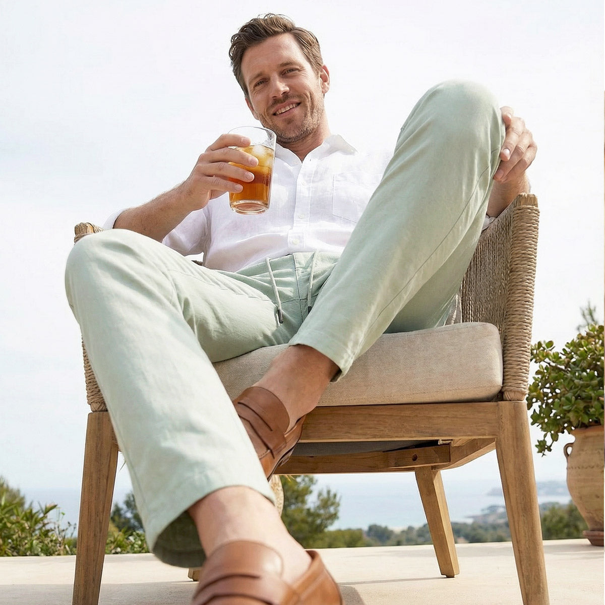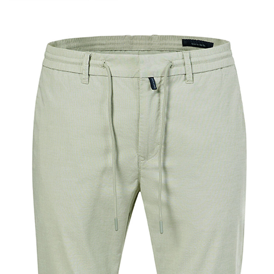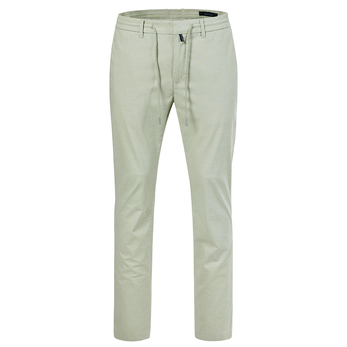 Széleskörben kihasználható, felszabadult megvalósítású, finom tapintású, almazöld megkötös chino nadrág a Pierre Cardin korszerű tervezésében. A Jeanswear kollekció részeként megjelenő. szabadidős öltözködés stílusjegyeinek elegánssal való kombinálása lenyűgöző, vonzó összhatássl bír. A gomb nélküli kivitelezés remekül kihangsúlyozza a nadrágra jellemző módfelett sportos hangvételt. Továbbá, a megszokott, élére vasalt, klasszikus kialakítást előremutatóan váltotta fel a nadrág korcának stretches része, még rugalmasabbá és kényelmesebbé téve a nadrág viselését. Mindehhez a szabadidős nadrágoktól kölcsönvett megkötős zsínórok nyújtanak nem cask funkcionalitás, de kényelem szempontjából is módfelett elbűvölő megoldást.